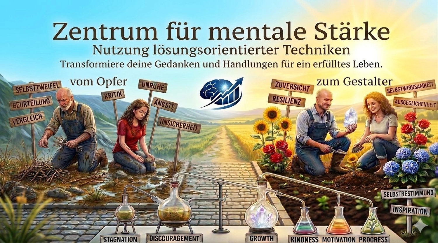 Wir gehen einen anderen Weg als die klassische, oft langwierige Psychotherapie. Während dort häufig die Ursachenforschung in der fernen Vergangenheit im Vordergrund steht, blicken wir im - Zentrum für mentale Stärke - nach vorne.